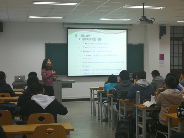 崔晓红首先向新生同学介绍英语等级考试的相关知识,提醒同学为本学期的四级考试做好充分的准备,并提早规划大学四年的英语学习。有趣的语言和生动的讲解让师生交流的氛围非常热烈。同学们认真地倾听着崔副教授的讲解,提出了许多英语学习的问题。最后崔晓红对本次讲座做了总结,并提醒大家珍惜时间,努力备考,预祝同学们取得优异成绩。