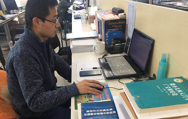 2017年国奖获得者、2016级博士研究生许震明在这个假期选择继续留在实验室完成自己的科研课题。“虽然放假了,但考虑到回家后基本上做不了科研,就决定留在学校。”他说,“我做的课题是有关从热力学角度尝试初步探索黑洞内部微观态结构的研究课题,现在初步计算基本完成,正在进行结果整理及物理分析,希望能通过寒假的‘加班’得到有意义的进展。”