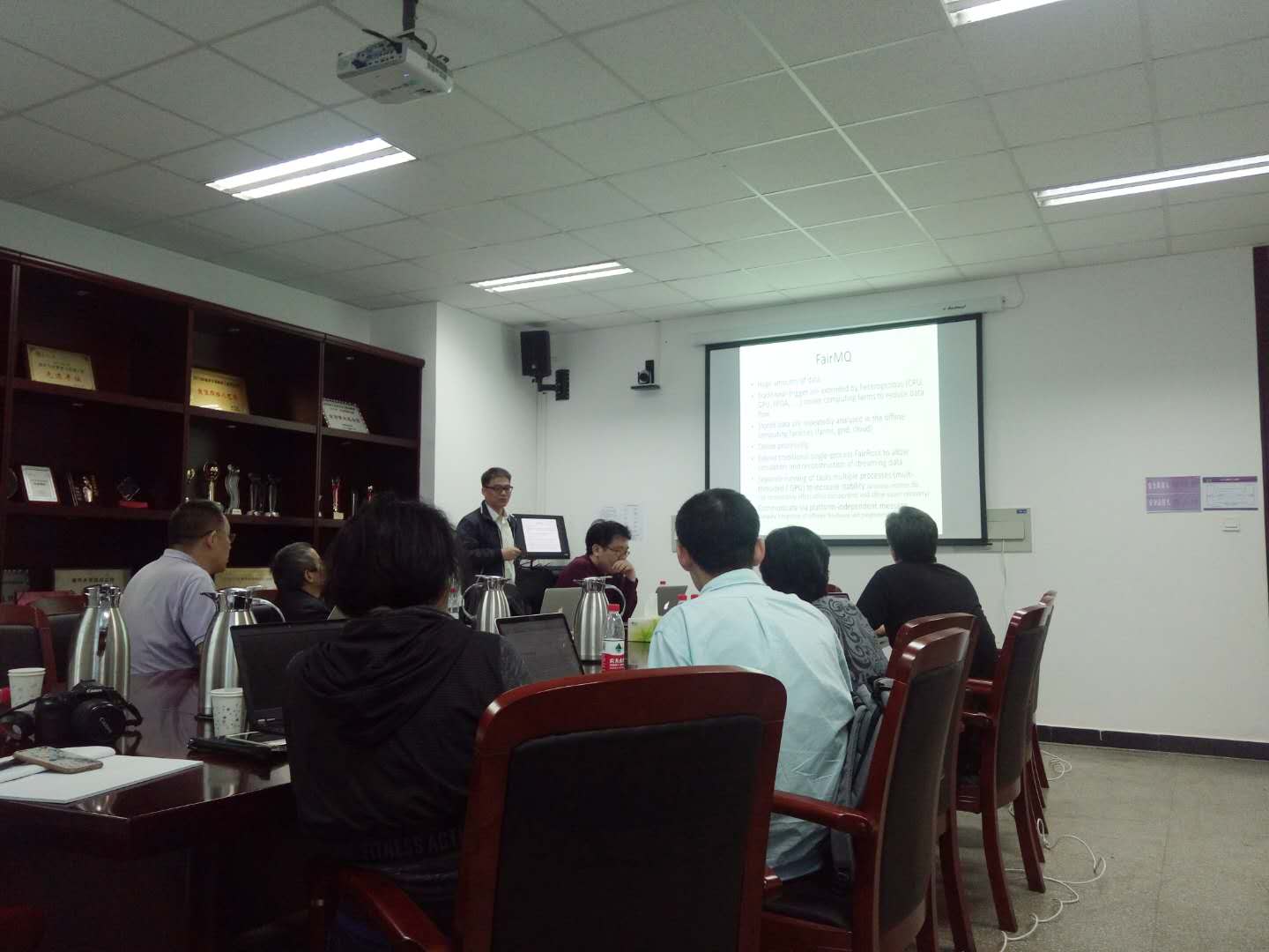 来自于高能所的孙胜森研究员、刘振安研究员分别对PANDA 实验软件及数据采集系统DAQ进行了介绍,赵光副研究员(IHEP) 对高能所的新近工作进展进行了报告。科技大学的黄光顺教授主持讨论中方团队协调规划建议,沈肖雁研究员等就如何进一步深入开展工作、申请项目等方面提出了一系列的建议。