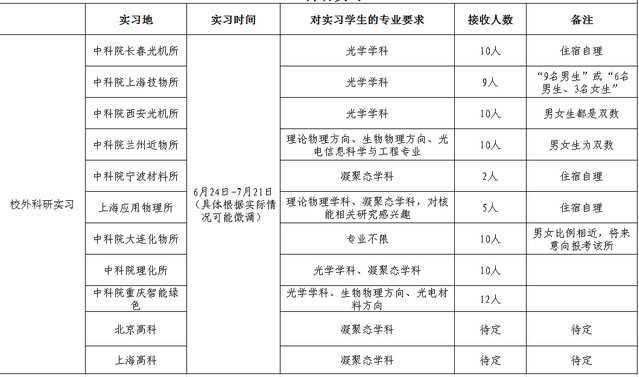 1.科研实习报名选拔原则为:志愿优先,相同志愿则专业(或学科)优先,相同专业(或学科)则成绩优先;学生可以选择除上述安排以外的实习单位(要求须为物理类科研单位,需自行联系,截至时间同报名截止时间),伯苓班学生直接填写赴国外科研实习的单位名称(中文);
