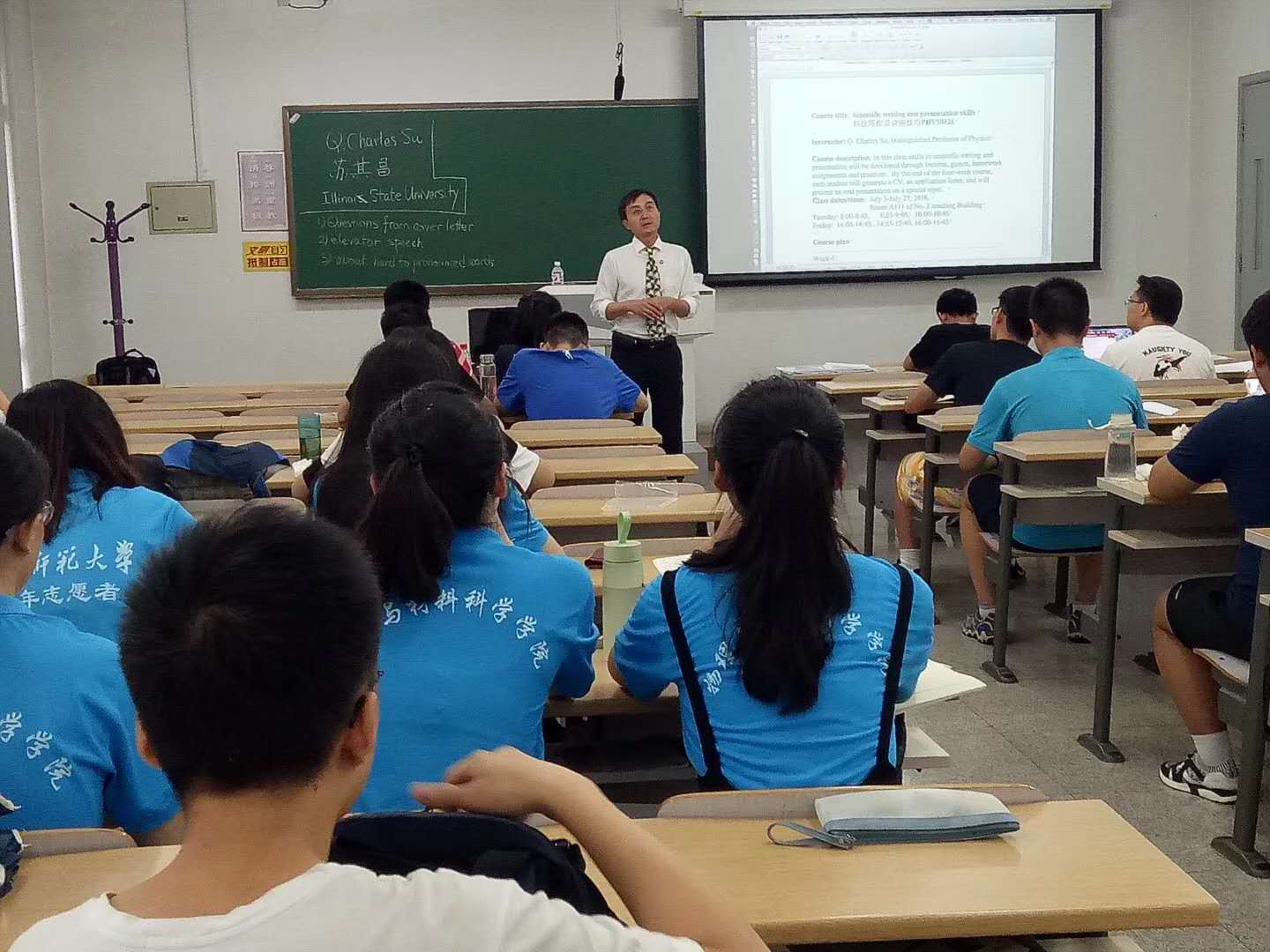 河南师范大学师生在南开大学第二教学主楼随堂聆听Qichang Charles Su教授的《科技写作及讲座技巧》课程