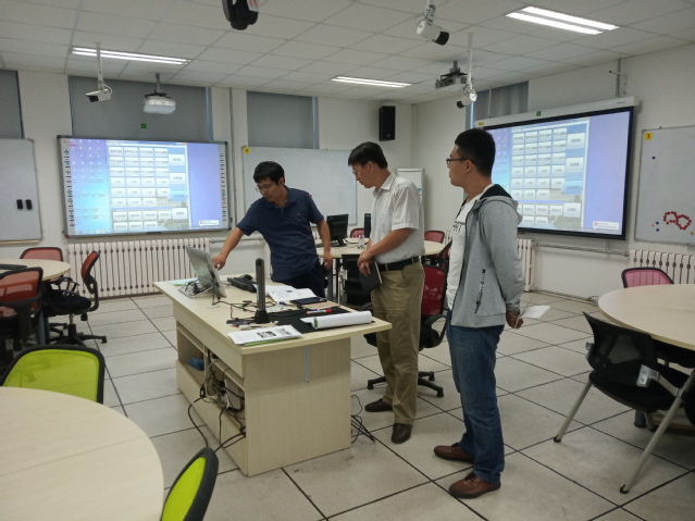 座谈前,回建东一行参观了我院TEAL互动学习教室和三教楼宇文化建设。