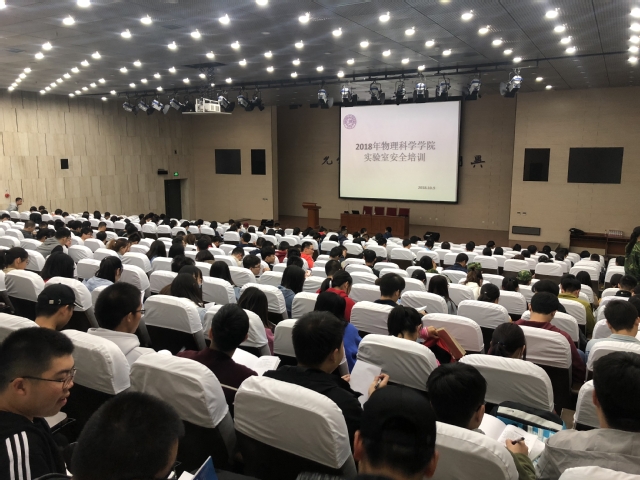(通讯员 孙经纬)2018年10月9日,物理科学学院在八里台校区综合实验楼地下报告厅开展面向全院新生及教师的实验室安全培训。来自实验室设备处技术安全科的王满意老师和医学院的崔建林老师受邀担纲本次培训的主讲人。本次培训旨在增强物理学院师生的实验室安全责任意识,提高安全防护与应急处置能力。物理学院师生近三百人参加本次培训。