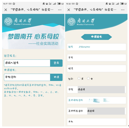 近期,团委联合南开大学招生办公室拟在全校范围内招募“梦圆南开·心系母校”专项社会实践活动成员,学生以个人或者团队为单位进行申报。团队报名可以跨学院、专业和年级,强化区域概念。同时,全体教职工均可报名参与,担任实践团队指导教师,在工作之余回到家乡,与南开学子共同参与实践活动,弘扬南开精神,展现南开风貌。
