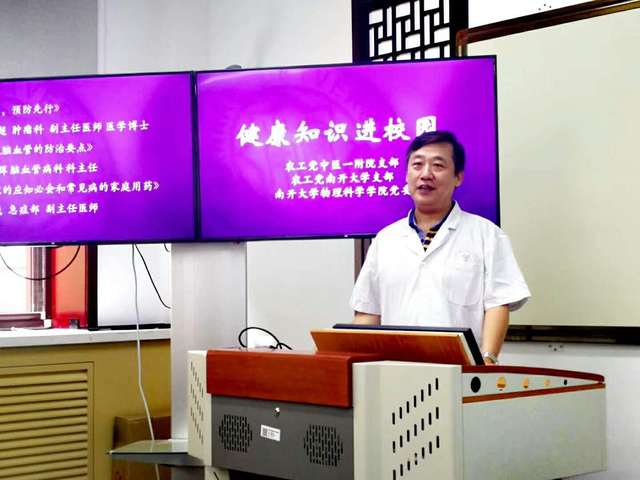 (通讯员 冯鸣)为深入学习贯彻习近平总书记在全国生态环境保护大会重要讲话精神,更好地关注广大教师的身心健康,倡导健康理念,普及健康知识,6月21日,物理科学学院党委联合农工党南开大学支部、农工党中医药大学第一附属医院支部,在三教104会议室举办“健康与您同行”主题活动,邀请农工党中医一附院支部的多位专家做常见病防治的公益讲座,并为参加讲座的师生提供健康咨询和义诊。物理科学学院党委副书记赵爽、市政协委员、农工党南开大学支部委员会主委李川勇、市政协委员、中医一附院支部委员会主委于勇,以及南开大学师生等三十余人参加了活动。