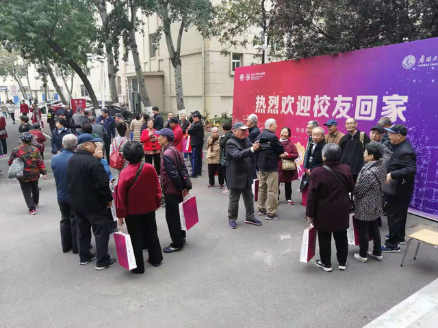 在集中返校报到日,学院老师带领二十余名志愿者早早到达工作地点,为来自五湖四海的校友提供热情的服务。校友们报到后领取学校为返校校友精心准备的纪念品,参观校园,了解学校及学院发展。部分校友向学院赠送了书法作品,以表达对百年南开最美好的祝愿,还有众多校友捐款超过25万元支持学院事业发展,其中81级校友刘道志、82级校友张忠民夫妇捐款10万元用于学院伯苓班的书院建设,校庆期间学校主楼上演的灯光秀表演的部分内容也是由82级物理系校友捐赠的。