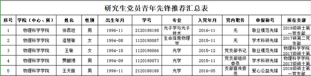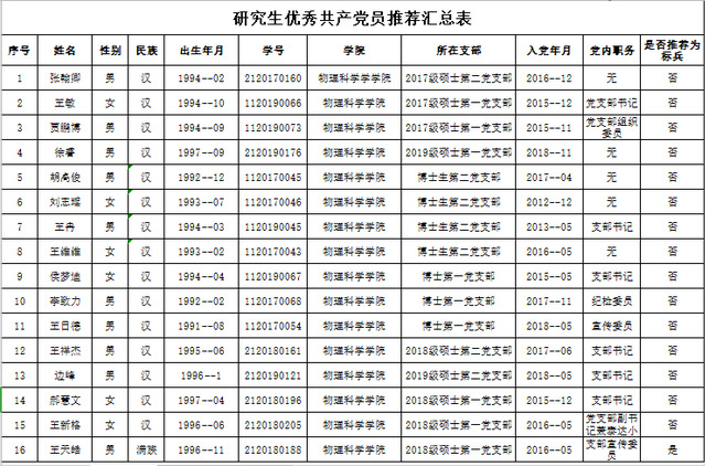 经过评审组对申请材料评审,评选出优秀党支部2个,推荐17硕士第一党支部参评学校红旗党支部;评选出优秀党员16位,推荐王天皓参评学校优秀党员标兵;评选出敬业模范先锋2位,学术科研先锋2位,爱心公益先锋1位。