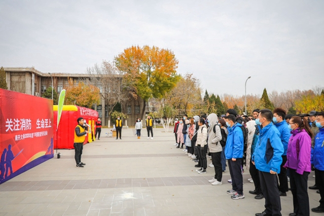 (通讯员赵玮璐)正值“119”消防宣传月,11月26日,物理科学学院联合学校保卫处在八里台校区敬业广场举办以“关注消防,生命至上”为主题的消防培训及疏散演练活动。物理科学学院党委副书记张学良、副院长唐柏权到场指导,学院2020级研究生新生及部分在院工作人员参与活动。