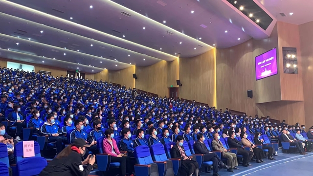 (通讯员王天皓)为进一步贯彻落实习近平总书记在党史学习教育动员大会上的重要讲话精神,深入学习宣传贯彻习近平总书记关于传承弘扬“两弹一星”精神重要论述,在中国航天日即将到来之际,物理科学学院原创话剧《永怀》受武清区教育局邀请,于天和城实验中学报告厅进行武清区青少年党史学习教育专场展演。武清区教育局二级调研员胡鸿,团区委副书记王武亮,教育局综合素质科科长陈颖,天和城实验中学校长史学忠、党总支书记王玉红、副校长吕炜,全区各中学团组织负责人、青年团员和学生代表,天和城实验中学高一年级全体学生等近千人观看演出。