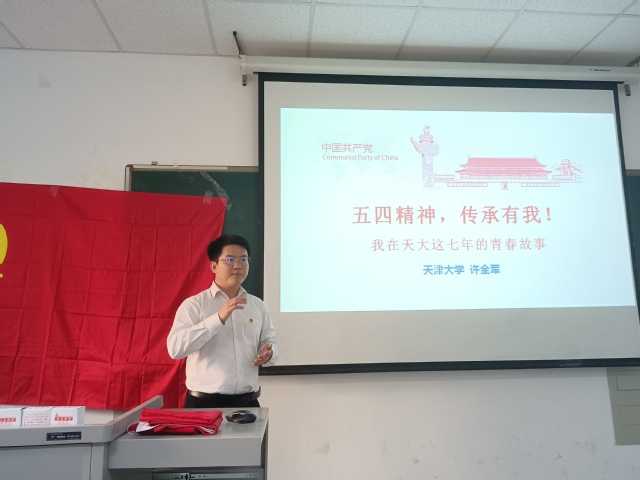 (通讯员王天皓)为教育引导广大同学厚植家国情怀,践行青年担当,5月4日下午,物理科学学院在三教105室举办了“传承五四薪火,担当时代重任”青春事迹分享会,邀请中国大学生自强之星、外国语学院2018级博士研究生张雅雯和中国青年志愿者优秀个人、天津大学材料学院2019级硕士研究生许全军进行专题分享。物理科学学院辅导员辛琦老师,物理科学学院硕士第2党支部、博士第2党支部、硕士第5党支部,2019级四班团支部、2020级二班团支部成员于线上线下参加了活动。