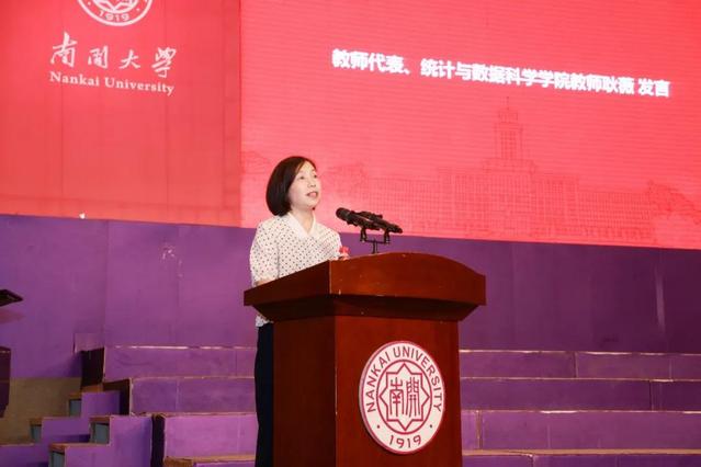 教师代表、统计与数据科学学院教师耿薇亲切地与同学们分享工作中的心得体会,鼓励同学们“把小我融入大我”,不负韶华,扎实求学,愈难愈开!
