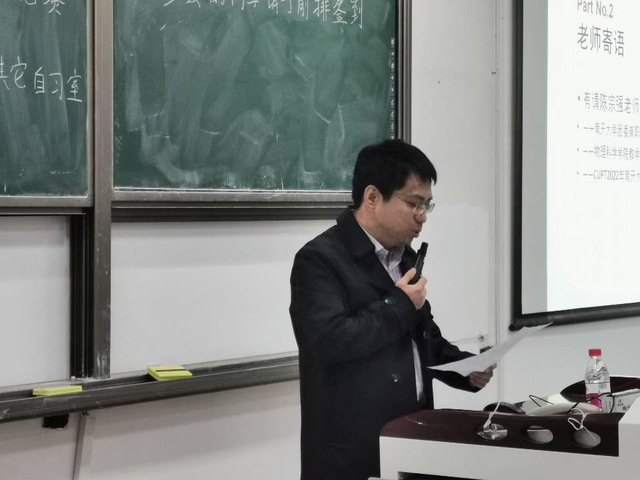 随后,校团委兼职副书记陈宗强从CUPT领队的角度出发,分享了自己近年来陪伴同学们参与国赛的心得感悟,强调了潜力、素养、团队合作以及“公心”的重要性,期待同学们能够在全国赛的赛场上勇夺佳绩。