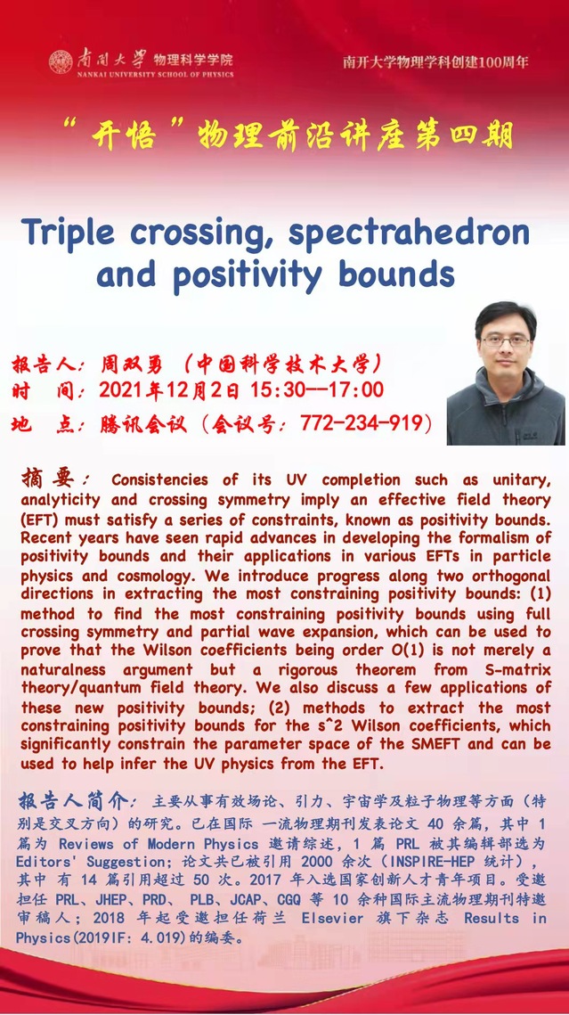 【“开悟”物理前沿讲座】(第 4 期)Triple crossing, spectrahedron and positivity bounds