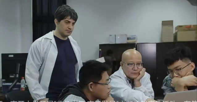 图2 南开大学讲席教授陈志刚与其中三位共同一作:物理科学学院博士生王孜腾、王向东以及外籍博士后Bongiovanni一起讨论论文工作进展。