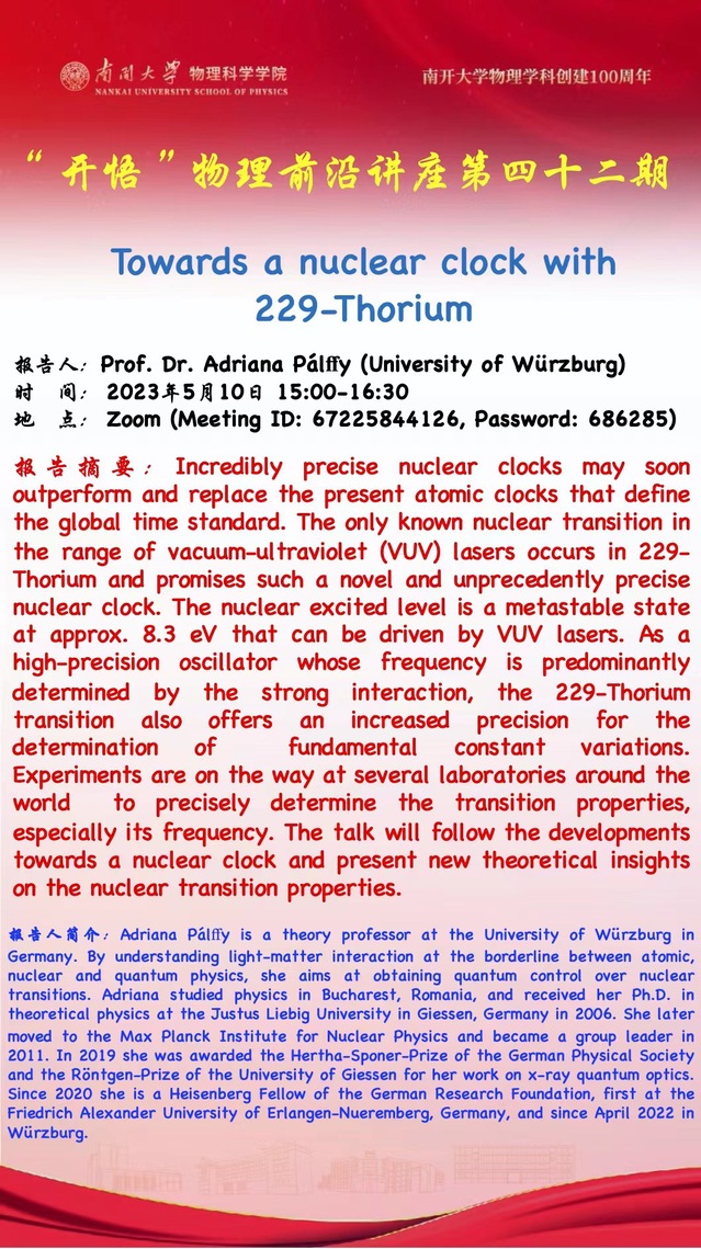 【“开悟”物理前沿讲座(第 42期)】Towards a nuclear clock with 229-Thorium