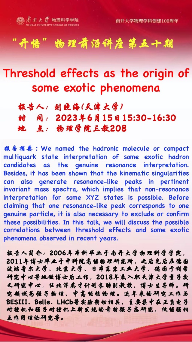 【“开悟”物理前沿讲座(第 50期)】Threshold effects as the origin of some exotic phenomena