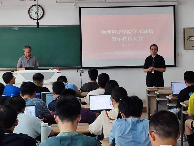 今年是学校学术诚信教育和学风建设年。据了解,物理科学学院按照学校党委部署制定了《物理科学学院“学风建设年”系列活动方案》。学院将持续加强科研诚信教育、学风作风建设,强化学生品德塑造和自警自律,树立正确价值导向。
