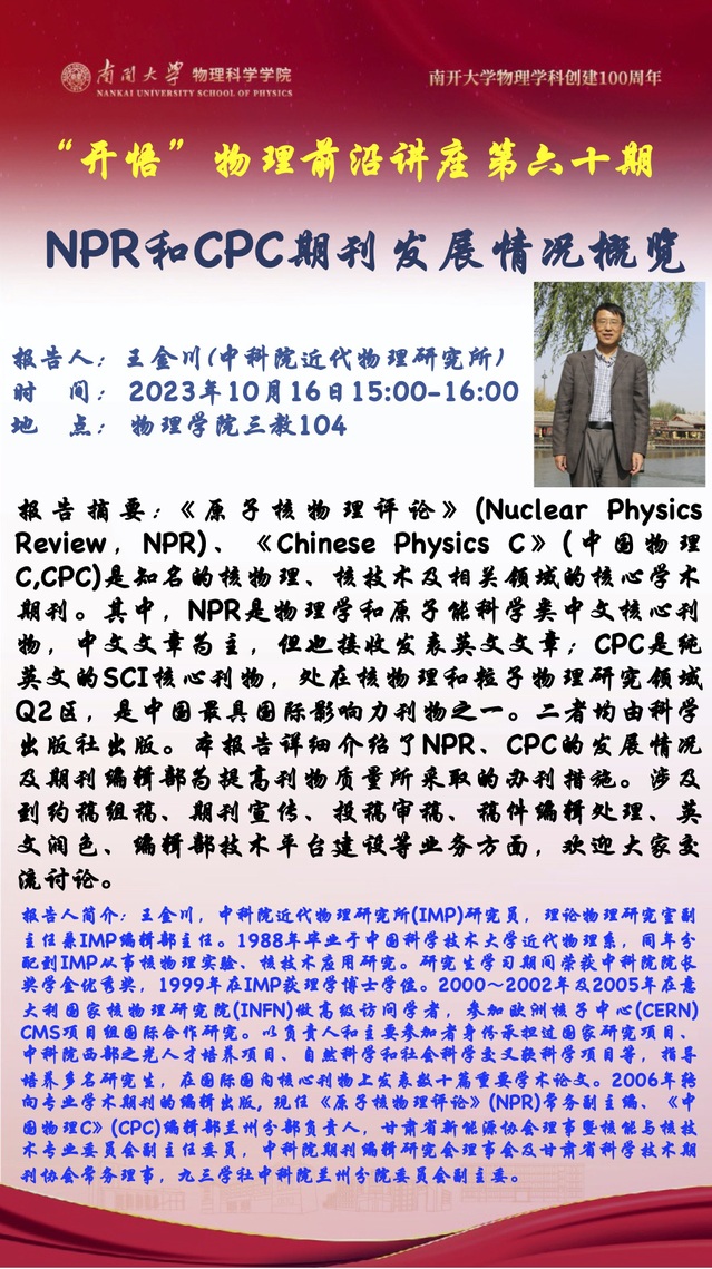 【“开悟”物理前沿讲座(第 60期)】NPR和CPC期刊发展情况概览