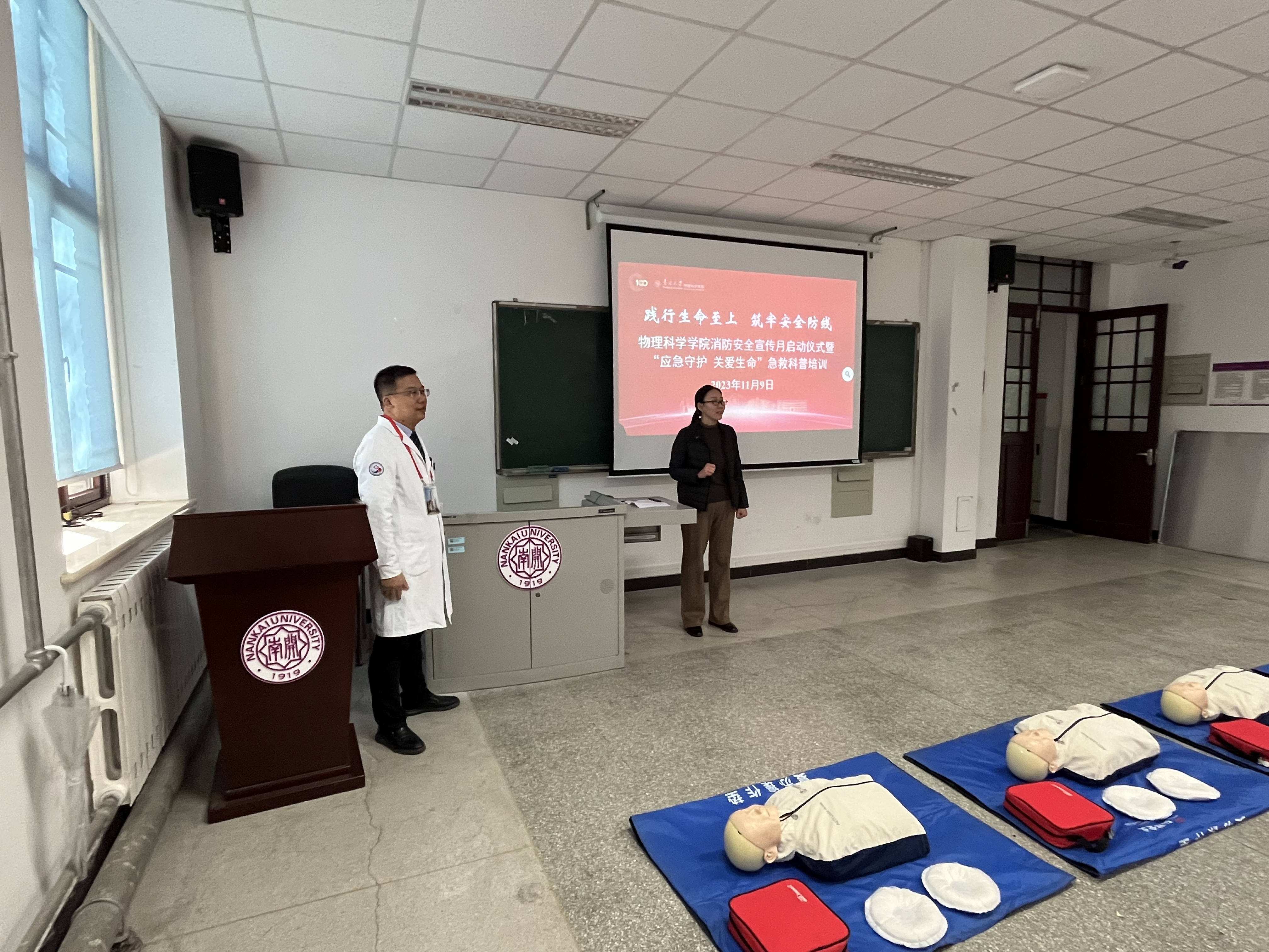 (通讯员:刘欣)11月9日上午,物理科学学院联合天津市第三中心医院公众心肺复苏急救科普基地,在三教105开展应急救护培训。五十余名老师和同学参与了活动。此次培训是物理科学学院消防安全宣传月的首场活动,进一步普及急救知识,提升师生自救互救能力。