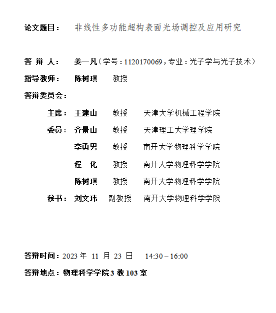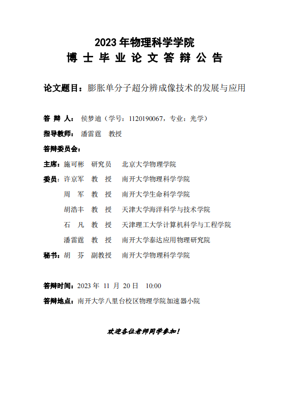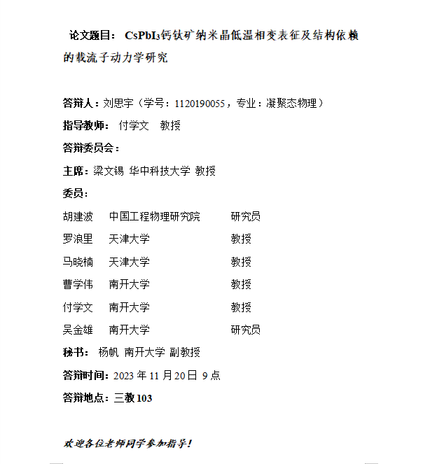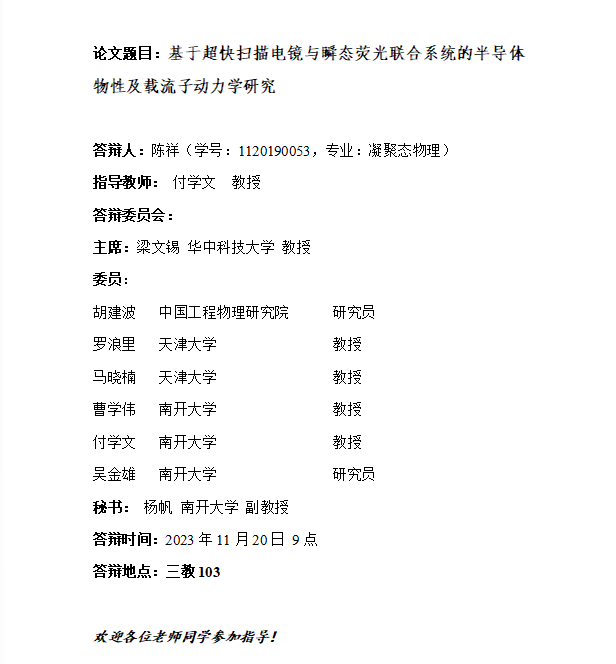 【毕业答辩】2023年物理科学学院博士毕业论文答辩公告(12月毕业批次)