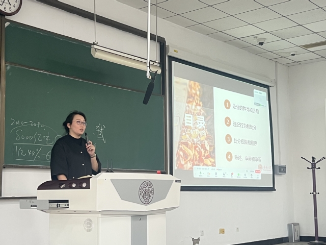 韩榕聚焦《南开大学学生违纪处分规定》《南开大学本科生学生学则》《南开大学研究生学则》《南开大学学生住宿管理规定》等文件,并结合学院实际,为全体学生普及了学校相关政策,并通过反面典型案例,详细讲解了违反校规校纪带来的危害,以点及面警钟长鸣。