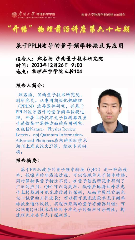 【“开悟”物理前沿讲座 (第67期)】基于PPLN波导的量子频率转换及其应用