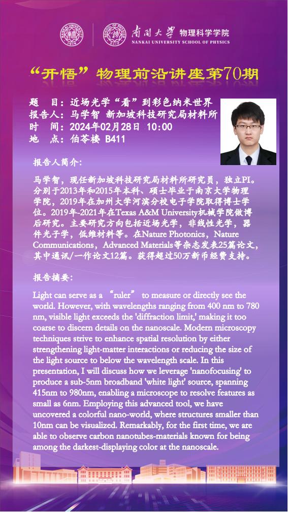 【“开悟”物理前沿讲座(第70期)】近场光学“看”到彩色纳米世界