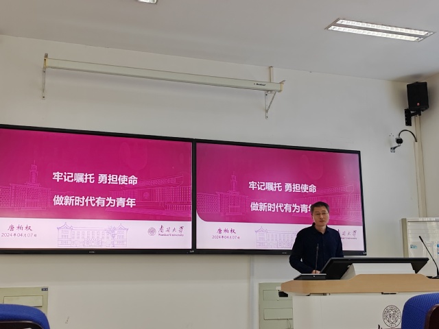 唐柏权以“牢记嘱托,勇担使命,做新时代有为青年”为题,从习近平总书记视察天津重要讲话切入,聚焦新时代新征程习近平总书记对天津工作的总体要求,深刻阐述了讲话的政治意义、理论意义和实践意义。他说,习近平总书记擘画了全面建设社会主义现代化大都市、奋力谱写中国式现代化天津篇章的宏伟蓝图,为天津发展指明了前进方向,提供了科学指引,作为新时代的青年学生,不仅要学习好、宣传好、贯彻好习近平总书记视察天津重要讲话精神,更要将其转化为自身动力,用自己的行动践行为人民服务的宗旨,用自己的汗水浇灌国家的未来,用自己的坚韧勇担民族复兴的重任。