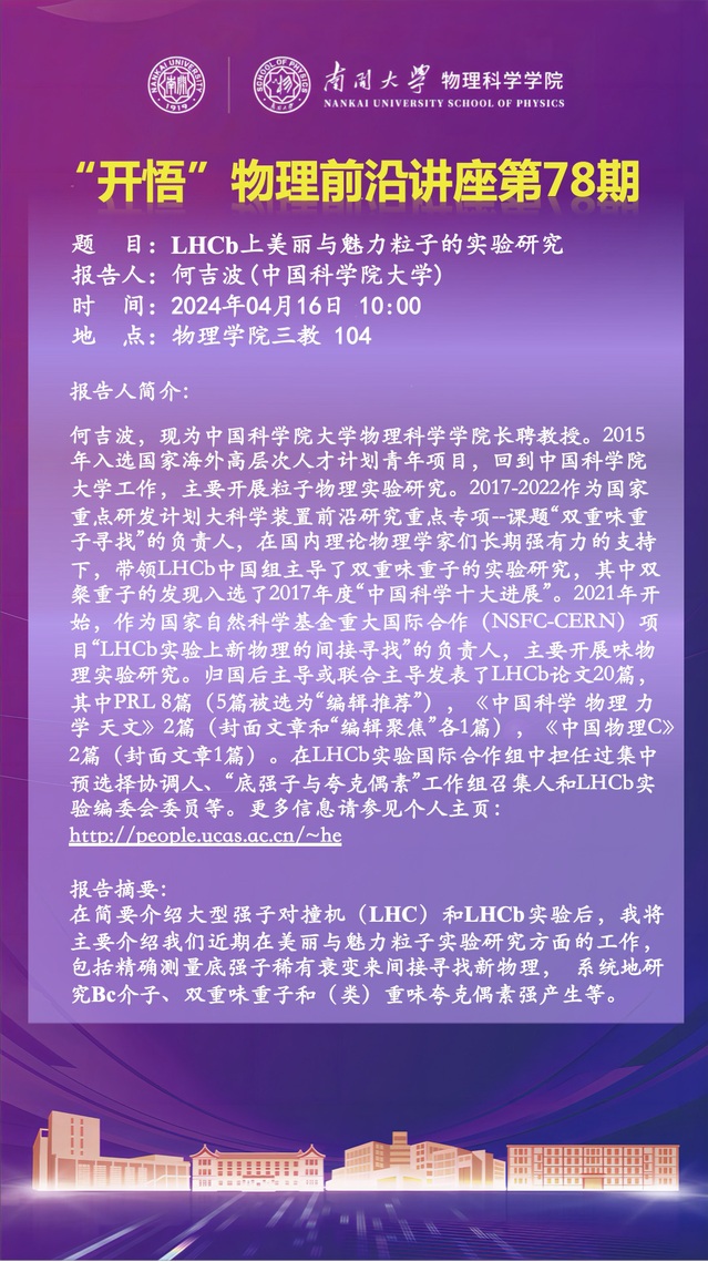 【“开悟” 物理前沿讲座 (第78期)】LHCb上美丽与魅力粒子的实验研究