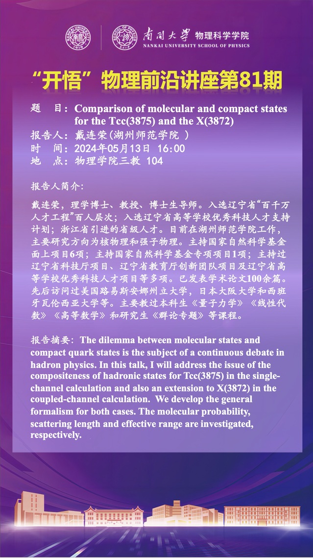 【“开悟”物理前沿讲座 (第81期)】Comparison of molecular and compact states for the Tcc(3875) and the X(3872)