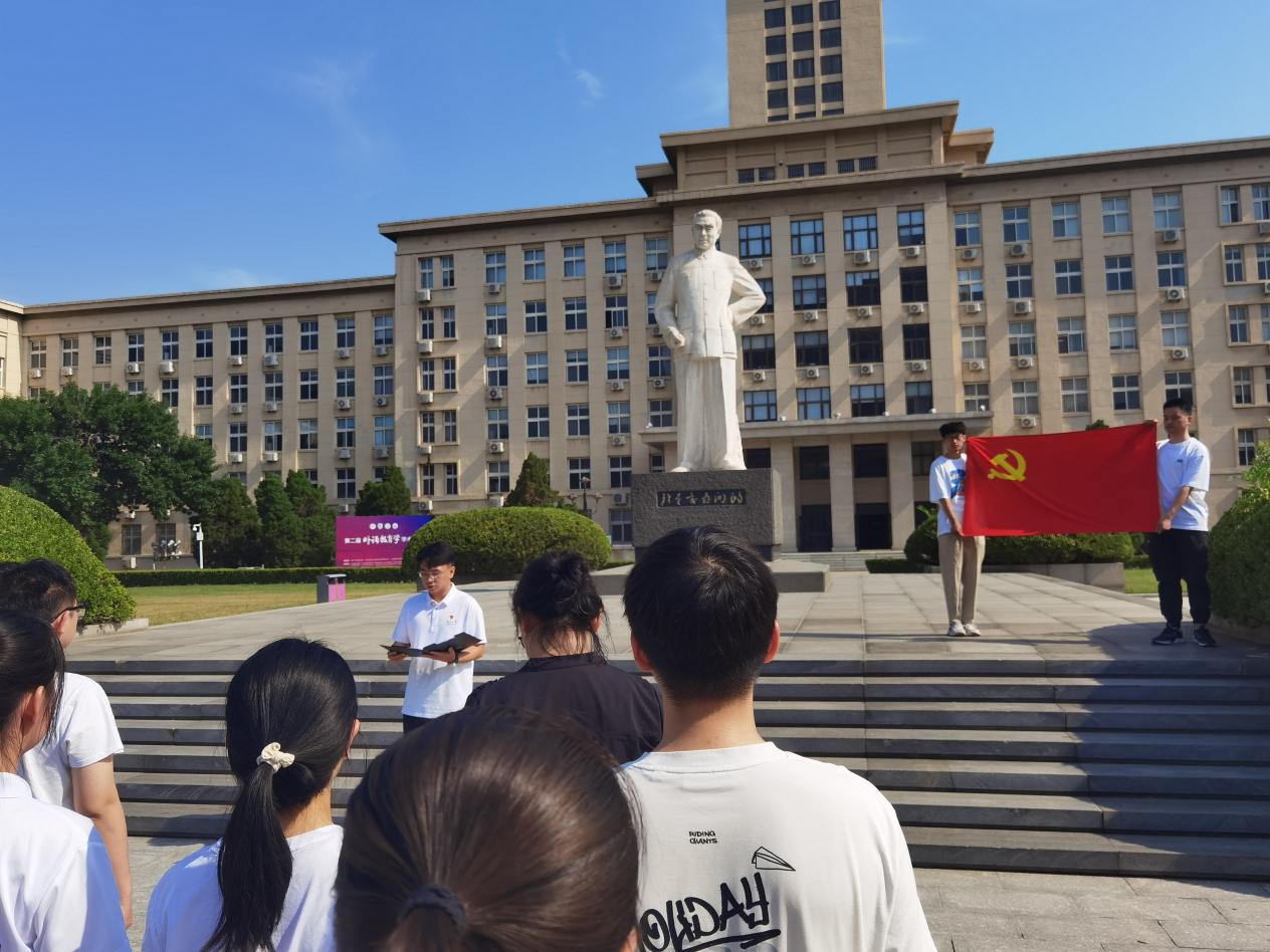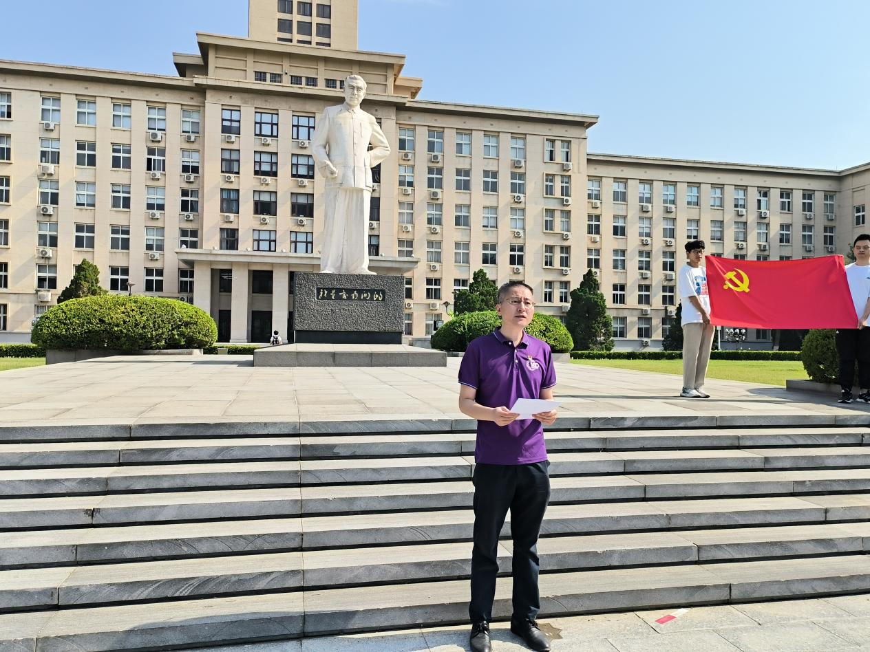 “我志愿加入中国共产党,拥护党的纲领,遵守党的章程,履行党员义务,执行党的决定……”学院新老党员面向党旗,举起右拳,共同重温入党誓词,在周总理像前用铮铮誓言表达对中国共产党的无限忠诚和为共产主义事业奋斗终身的坚定决心。随后,由学生代表向周恩来总理敬献鲜花、鞠躬致敬,向周恩来总理表达崇高敬意。