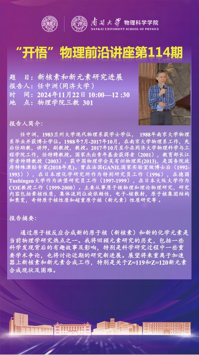【“开悟”物理前沿讲座 (第114期)】新核素和新元素研究进展