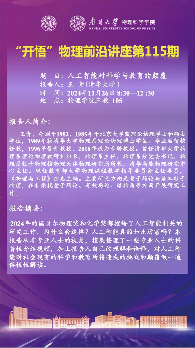 【“开悟”物理前沿讲座 (第115期)】人工智能对科学与教育的颠覆