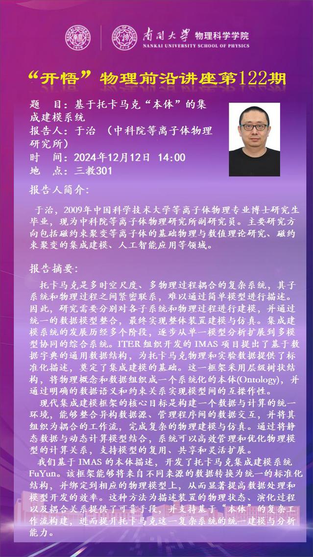 【“开悟”物理前沿讲座 (第122期)】基于托卡马克“本体”的集成建模系统