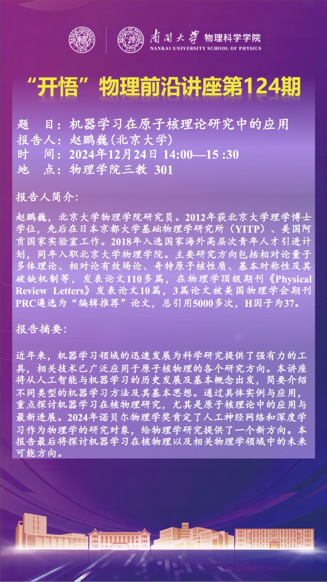 【“开悟”物理前沿讲座 (第124期)】机器学习在原子核理论研究中的应用