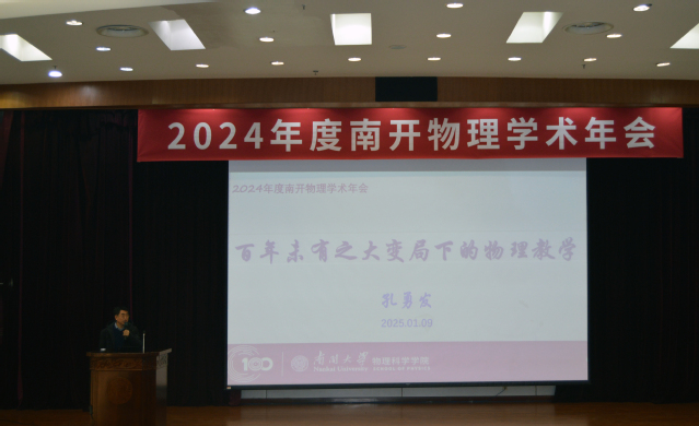 2025年1月9日,2024年度南开物理学术年会在省身楼二楼报告厅成功举行,物理科学学院、泰达应用物理研究院全体教师和博士后160余人参加了年会。