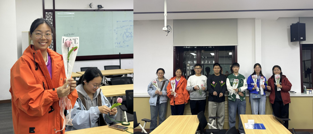 本次活动以“花悦心灵”为主题,同学们通过DIY制作扭扭棒花束的方式,让自己在繁忙的学习生活之余,找到一种轻松愉悦的放松方式。活动伊始,活动负责同学左裕哲向参与同学详细讲解了扭扭花的制作方式。随后,同学们迫不及待地开始扭扭花制作,不仅制作出了漂亮的郁金香花朵,还纷纷发挥想象力,用原材料编织的花篮、花冠等。活动尾声,同学们在空白卡片上写下心灵寄语并合影留念。本次活动不仅锻炼了同学们的动手能力与创造力,还帮助同学们在轻松愉快的氛围中缓解了紧张焦虑的情绪,重拾了内心的平静和愉悦。