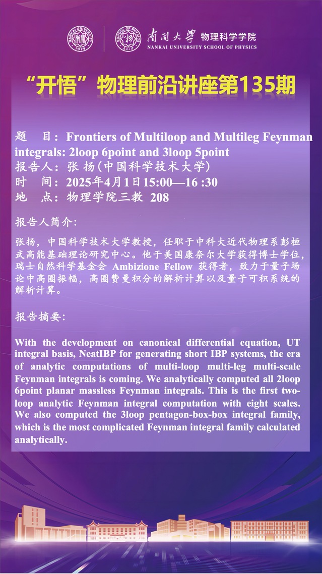 【“开悟”物理前沿讲座 (第135期)】Frontiers of Multiloop and Multileg Feynman integrals: 1loop 6point and 3loop 5point