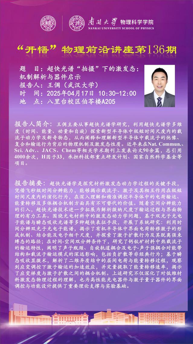 【“开悟” 物理前沿讲座(第136期)】超快光谱“拍摄”下的激发态:机制解析与器件启示