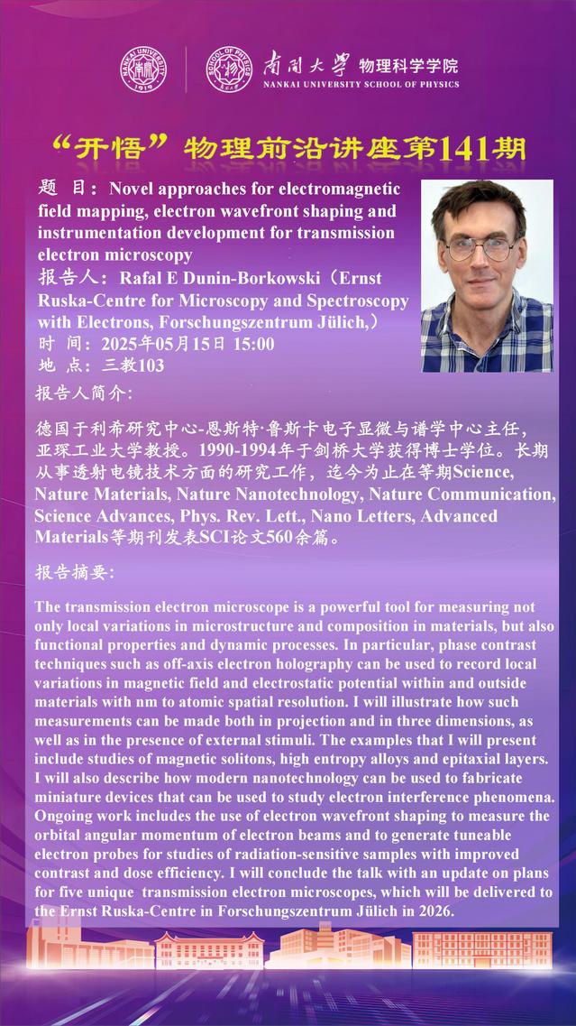 【“开悟”物理前沿讲座 (第141期)】Novel approaches for electromagnetic field mapping, electron wavefront shaping and instrumentation development for transmission electron microscopy
