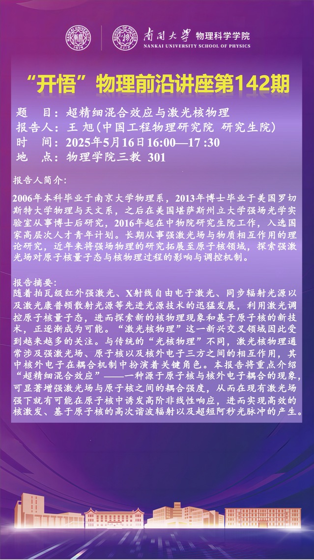 【“开悟”物理前沿讲座 (第142期)】超精细混合效应与激光核物理