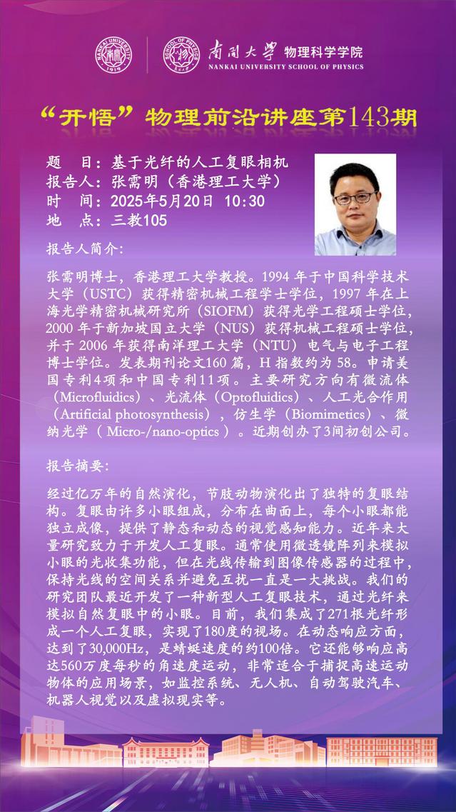 【“开悟”物理前沿讲座 (第143期)】基于光纤的人工复眼相机