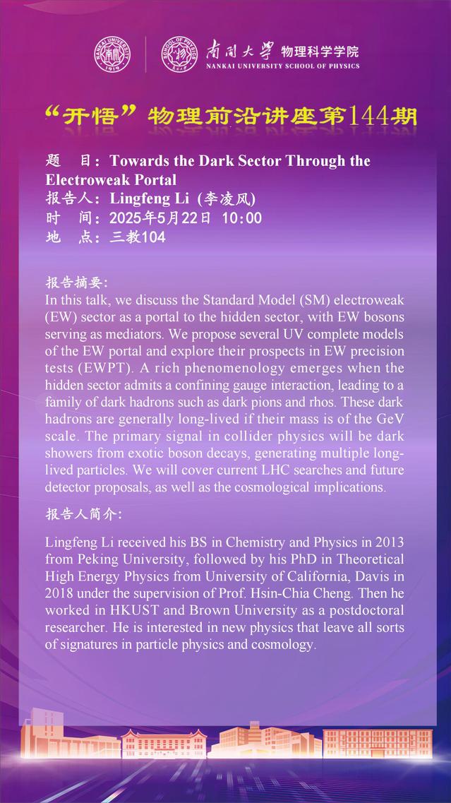 【“开悟”物理前沿讲座 (第144期)】Towards the Dark Sector Through the Electroweak Portal