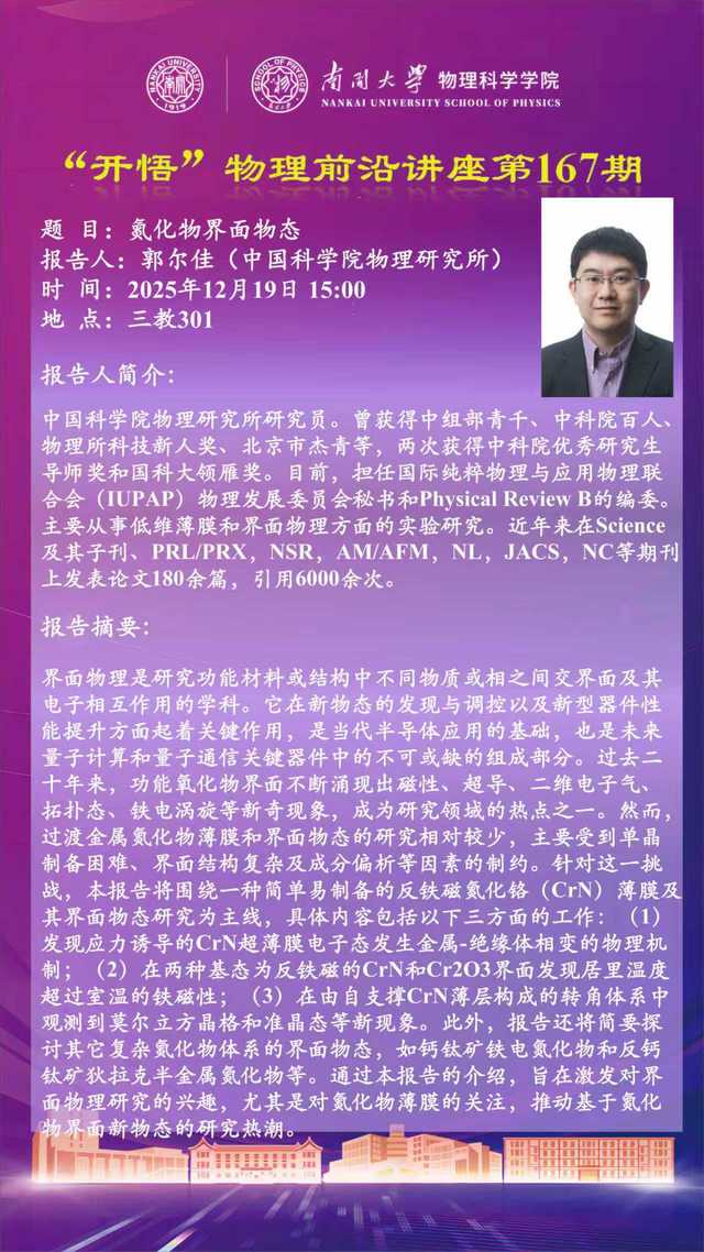 【“开悟” 物理前沿讲座 (第167期)】氮化物界面物态