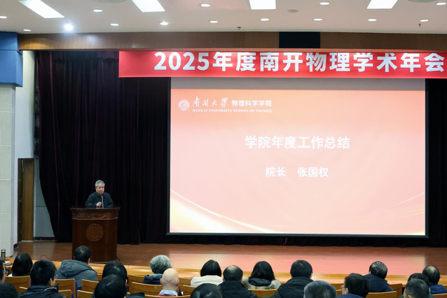 新岁序开,征程再启。1月22日上午,2025年度南开物理学术年会在省身楼二楼报告厅拉开帷幕,物理科学学院、泰达应用物理研究院全体教师和博士后190余人齐聚一堂,表彰先进典型,凝聚发展共识,共商学科发展大计,学院党委书记唐柏权主持。