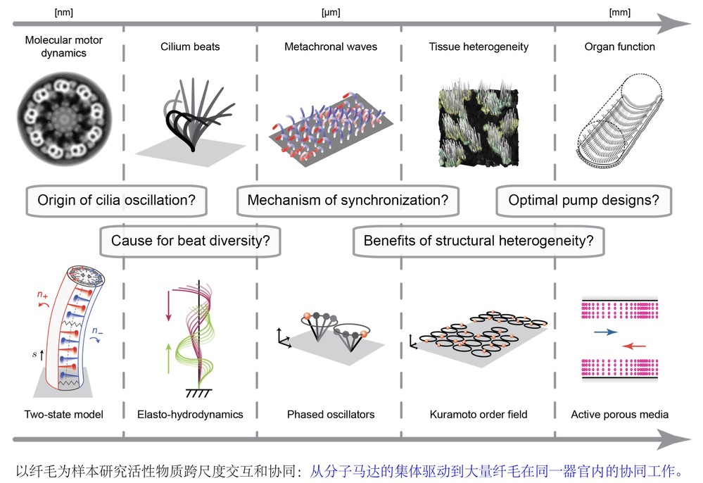 2022.09 - 2025.12, Helmholtz Munich, Bioengineering Center / IBMI,Nawroth Mechanobiology Lab, Postdoctoral Researcher, Advisor: Dr. Janna Nawroth. 2013.08 - 2015.12, UT Austin, Center for Space Research, Undergraduate Research Assistant, Advisor: Dr. Srinivas Bettadpur. ResumeLooking for talented postdocs and doctorate students! Offer is long standing. If you are interested in studying physics of living systems, please email me at ling.feng@nankai.edu.cn I joined Nankai Physics in January 2026. My research is in the field of complex systems, active matter, and biological fluid dynamics. Subjects of my study include motile cilia, fish schools and migrating cells. I received my Ph.D. in Fluid Mechanics from Dr. Eva Kano’s Bio-inspired motion lab at University of Southern California, and finished my postdoctoral training with Dr. Janna Nawroth in Helmholtz Pioneer Campus/ Helmholtz Munich Bioengineering Center / IBMI. Some of my most representative work was published in Nature Physics, Nature Communications, and PNAS. Personal Webpage: https://gofling.me/ Research FieldsI spend most of my time thinking about how living systems organize themselves, how motion, form, and function fold into dynamic loops that make biological physics ever so slightly more magical than partial differential equations in a book. My current focus is on cilia, the micrometer-scale, hair-like cellular appendages that line our airways, reproductive tracts, and even brain ventricles. Amazingly, not only is each cilium powered by thousands of dynein motors, but millions;of copies of cilia can also coordinate to fulfill macroscopic flow functions crucial to many ways of life -- from single-cell protists to algae colonies, larvae and embryos, wide variety of animals, and us human beings. These filamentous structures are also great inspirations for artificial micro-manipulators. My broader goal is to understand how local interactions produce effective group laws, how the collective dynamics pushes meso/macro-scale physics back onto the active constituent units, and the causal emergence of coordination. Subject of my study spans from cilia to migration of epithelial cells, to macroscopic collective motion of fish schools. I approach most of my study through the lens of coarse-grained modeling, mechanical instabilities, multi-stabilities, reinforcement learning techniques, as well as corresponding bench-top experiments.
