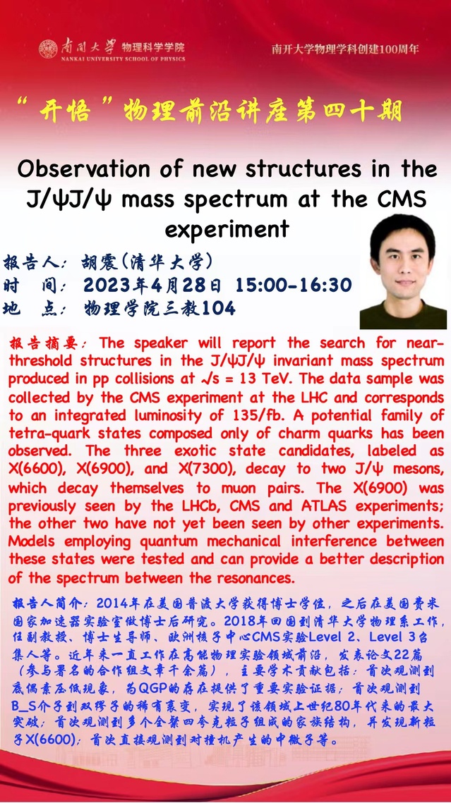 Kaiwu Lecture 40: Observation of new structures in the J/ΨJ/Ψ mass spectrum at the CMS experiment